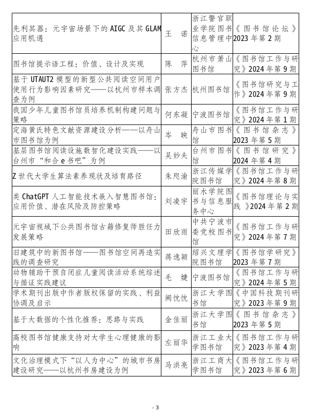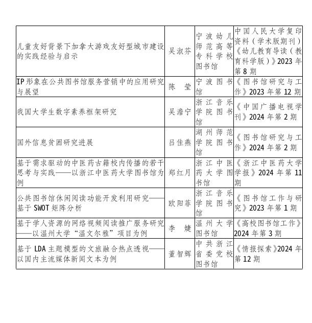 关于浙江省图书馆学会2024年度学术研究课题立项的公示