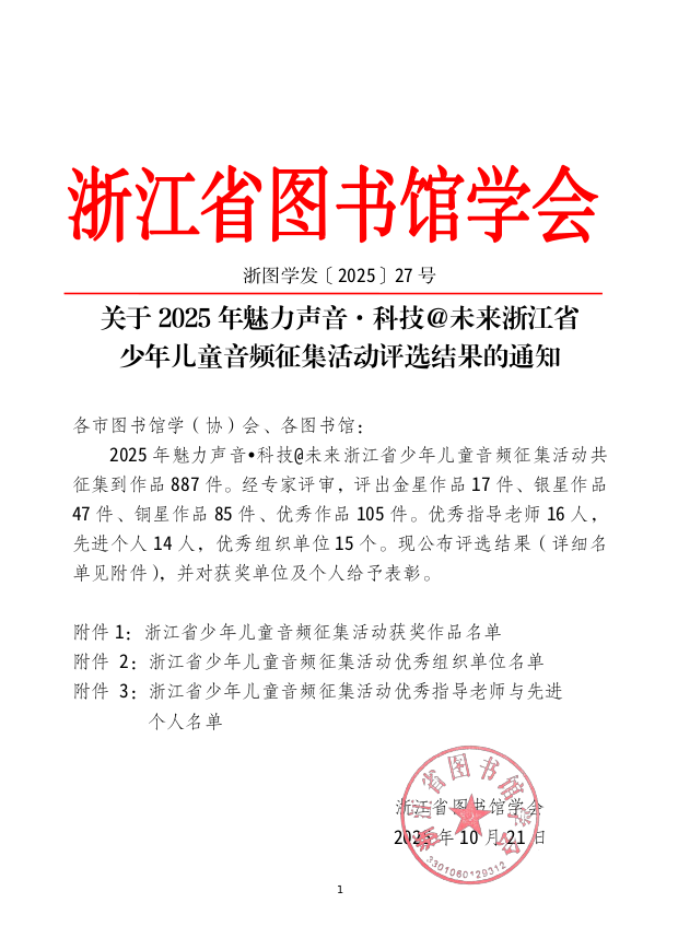 附件下载:附件1:浙江省少年儿童音频征集活动获奖作品名单